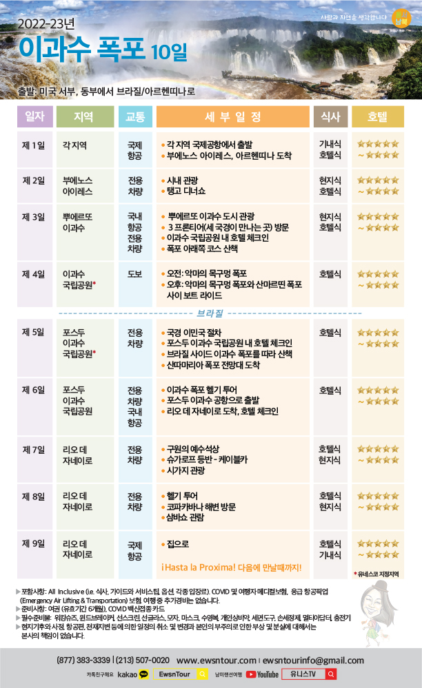 출발: 미국 서부, 동부-> 산티아고, 칠레 / 부에노스 아이레스, 아르헨티나